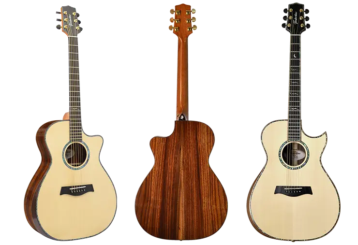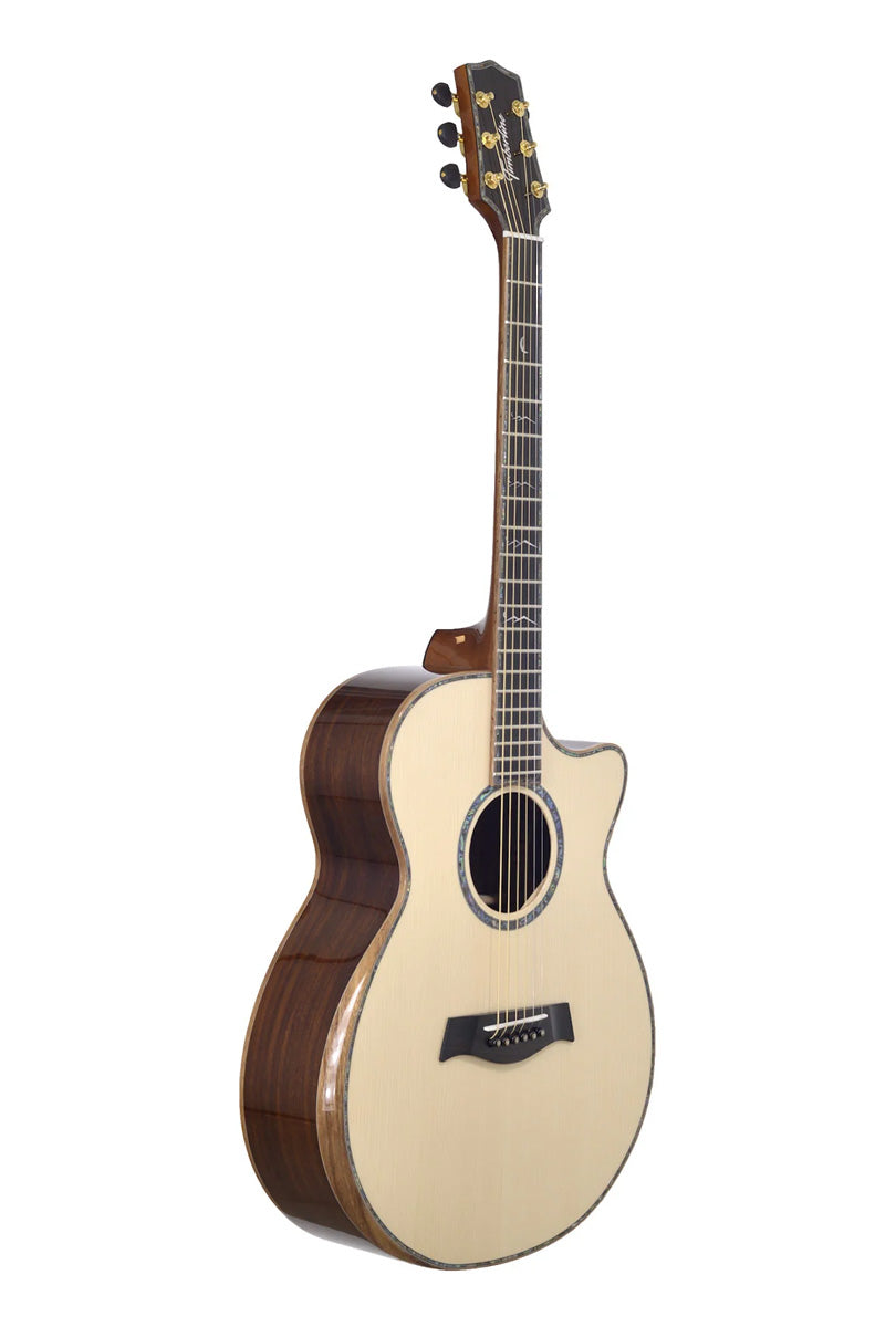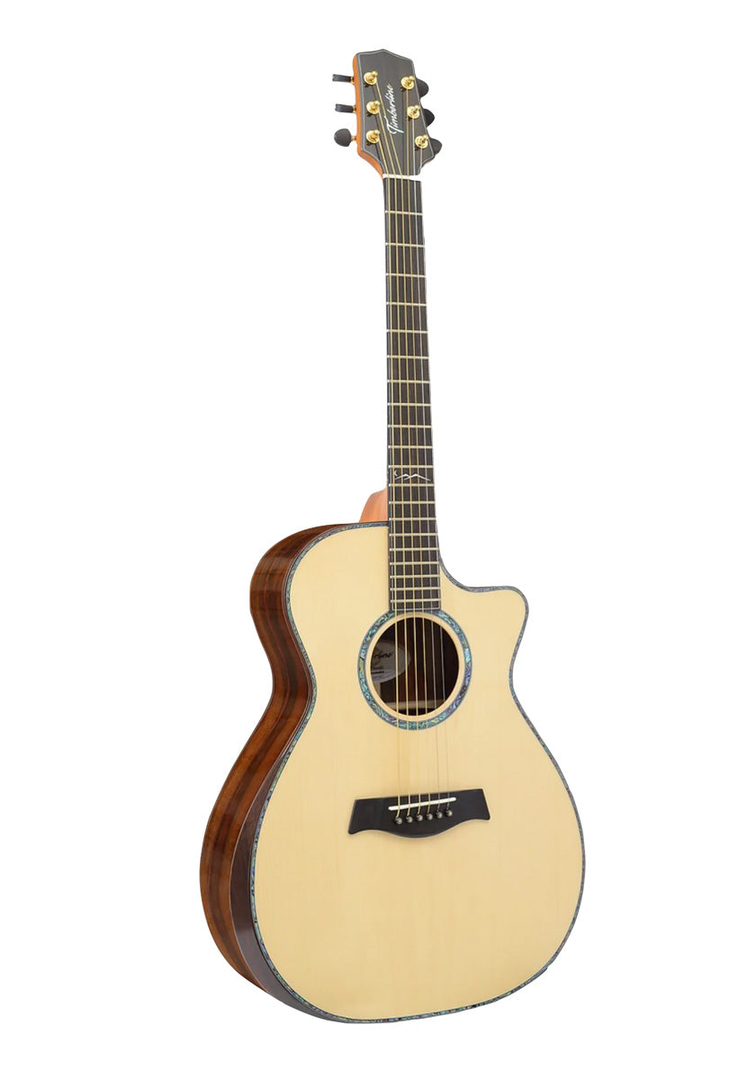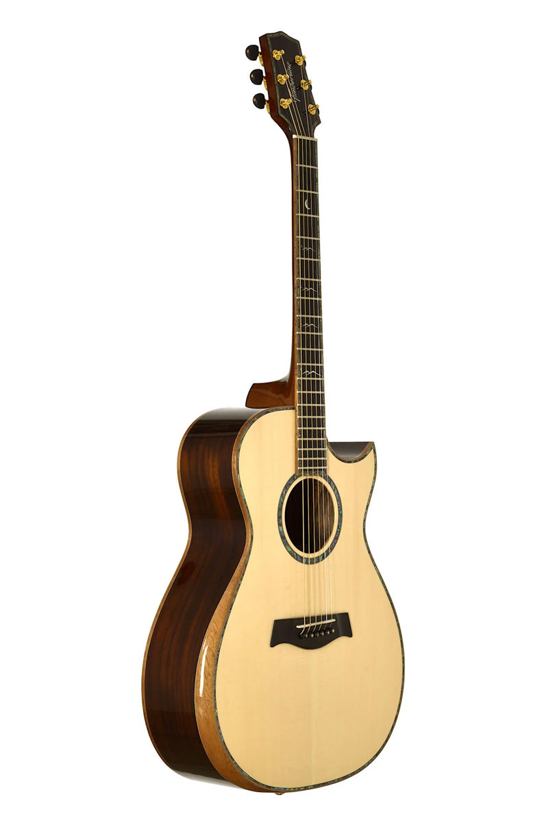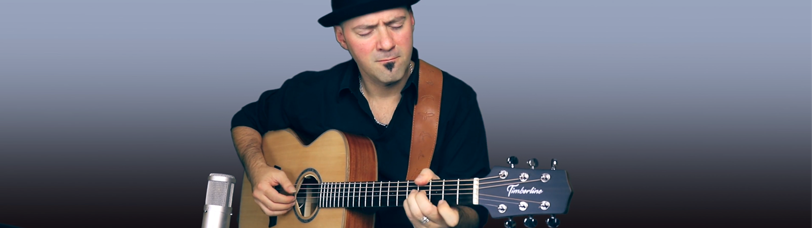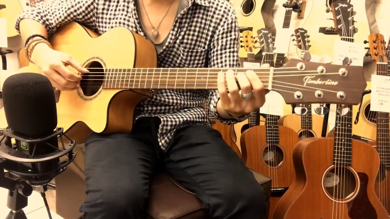 playing his cover of The Beatles’ “Michelle” on a Timberline® T80/20HGc-e 20 String Auditorium harp guitar