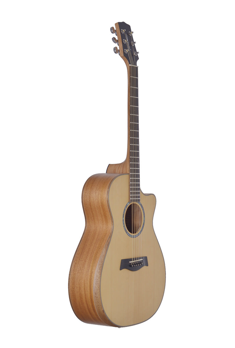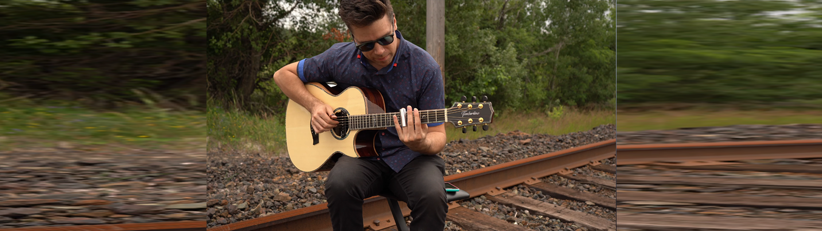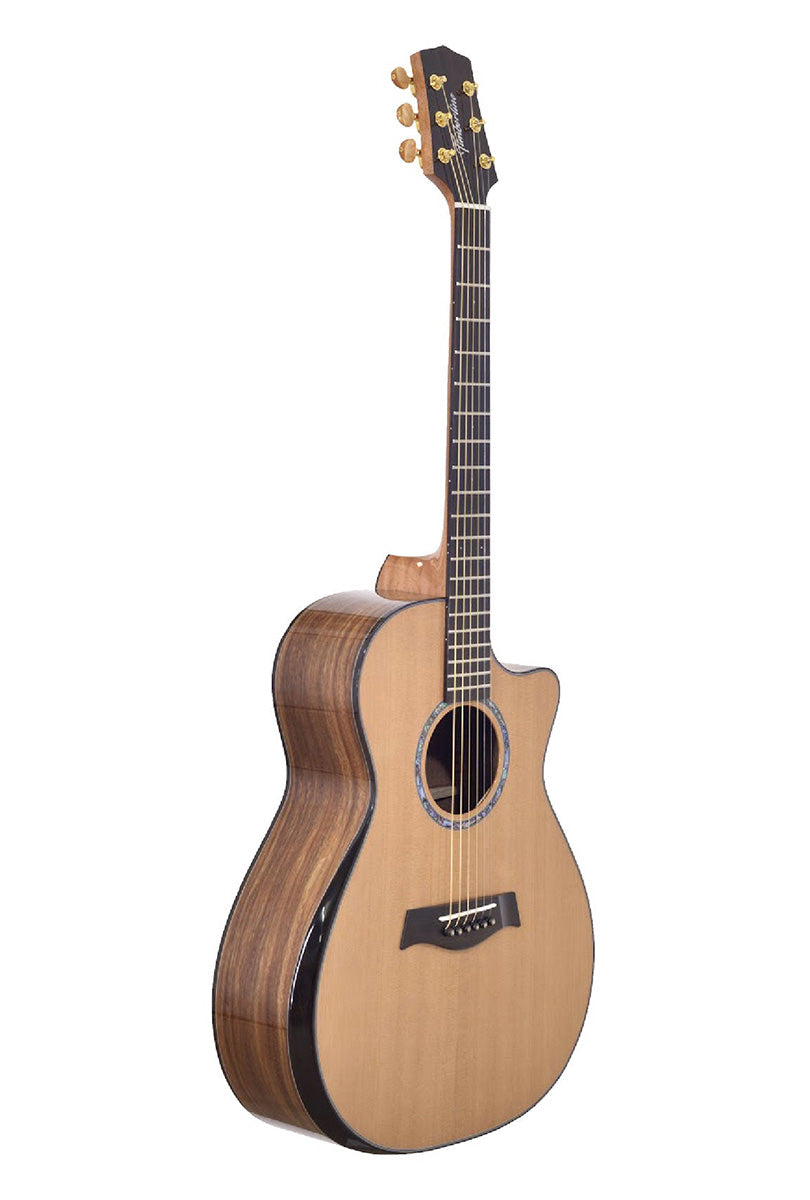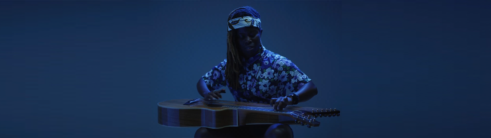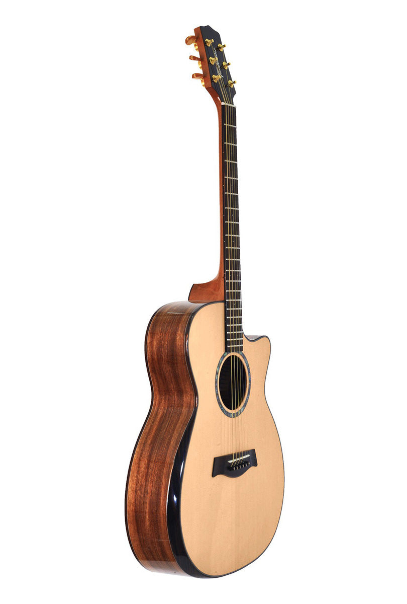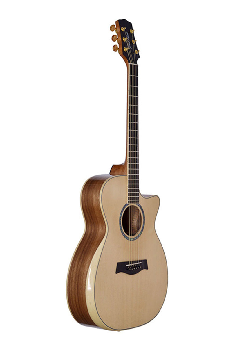 playing his cover of The Beatles’ “Michelle” on a Timberline® T80/20HGc-e 20 String Auditorium harp guitar