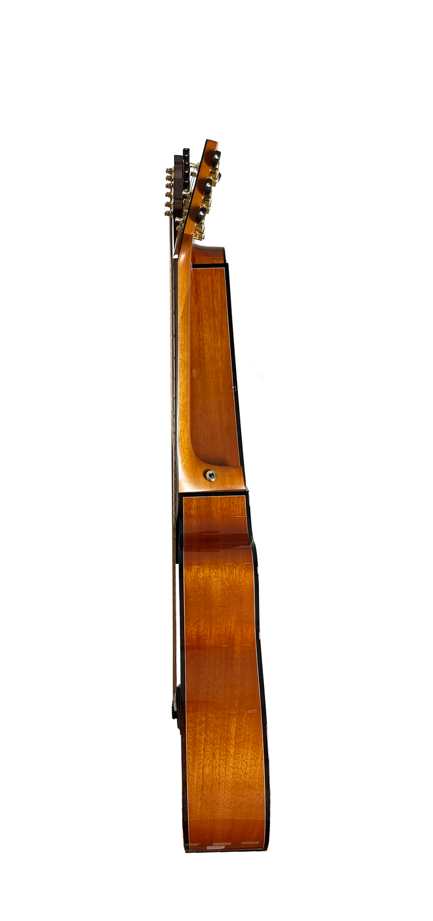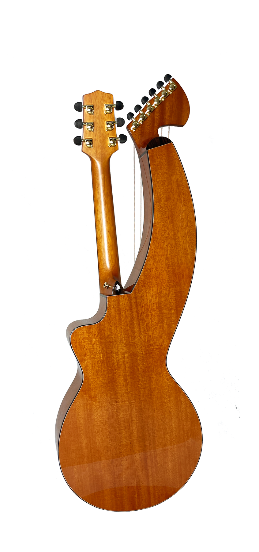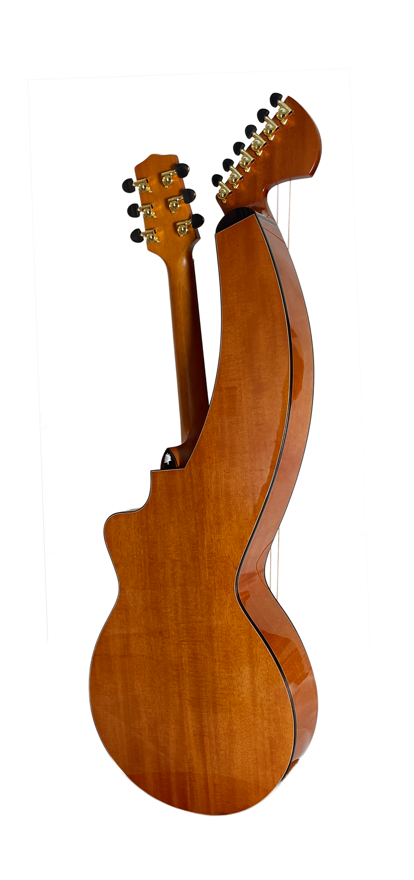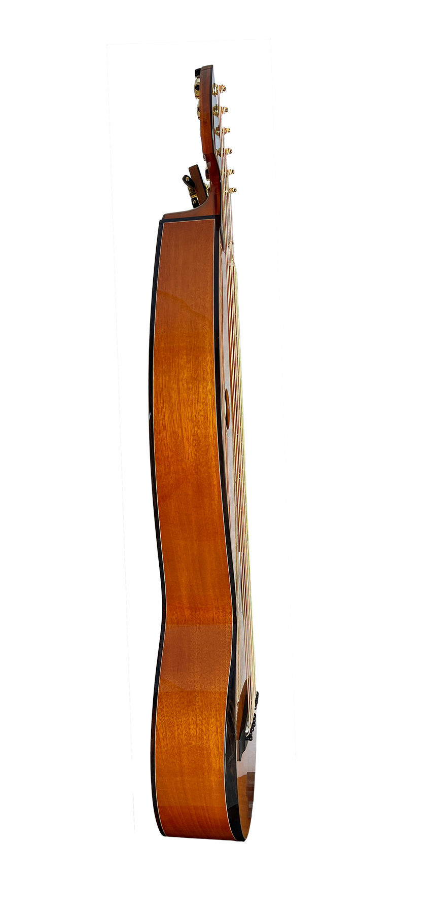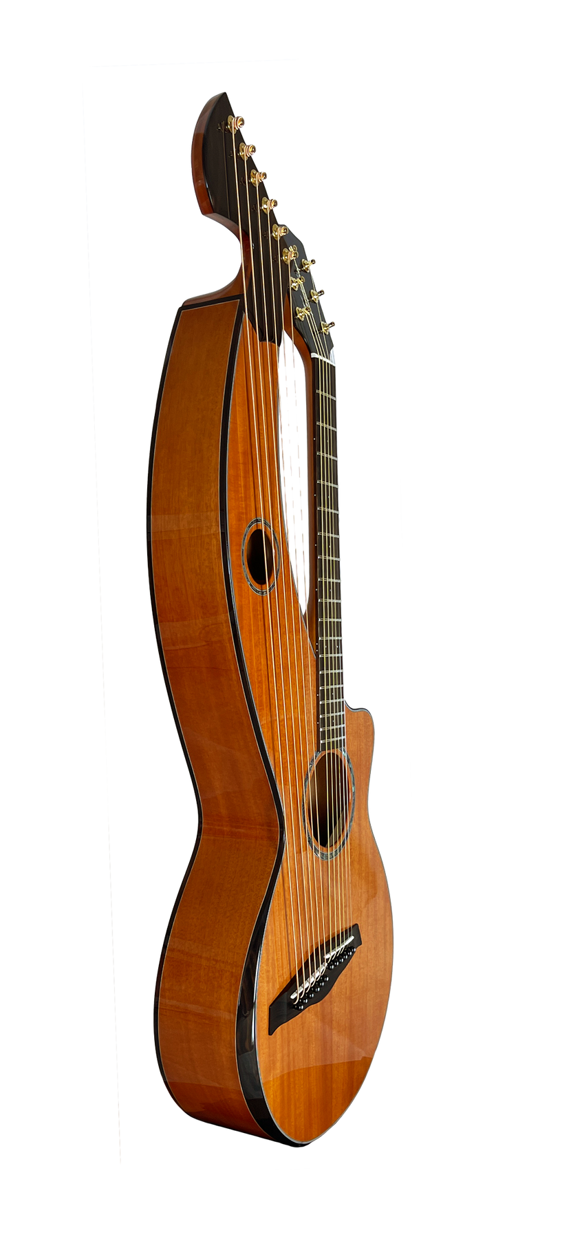 Parlor Cutaway 100% Gloss Tropical Mahogany Harp Guitar - Ebony Fret- board & Double Bridge plus Ebony Arm Bevel